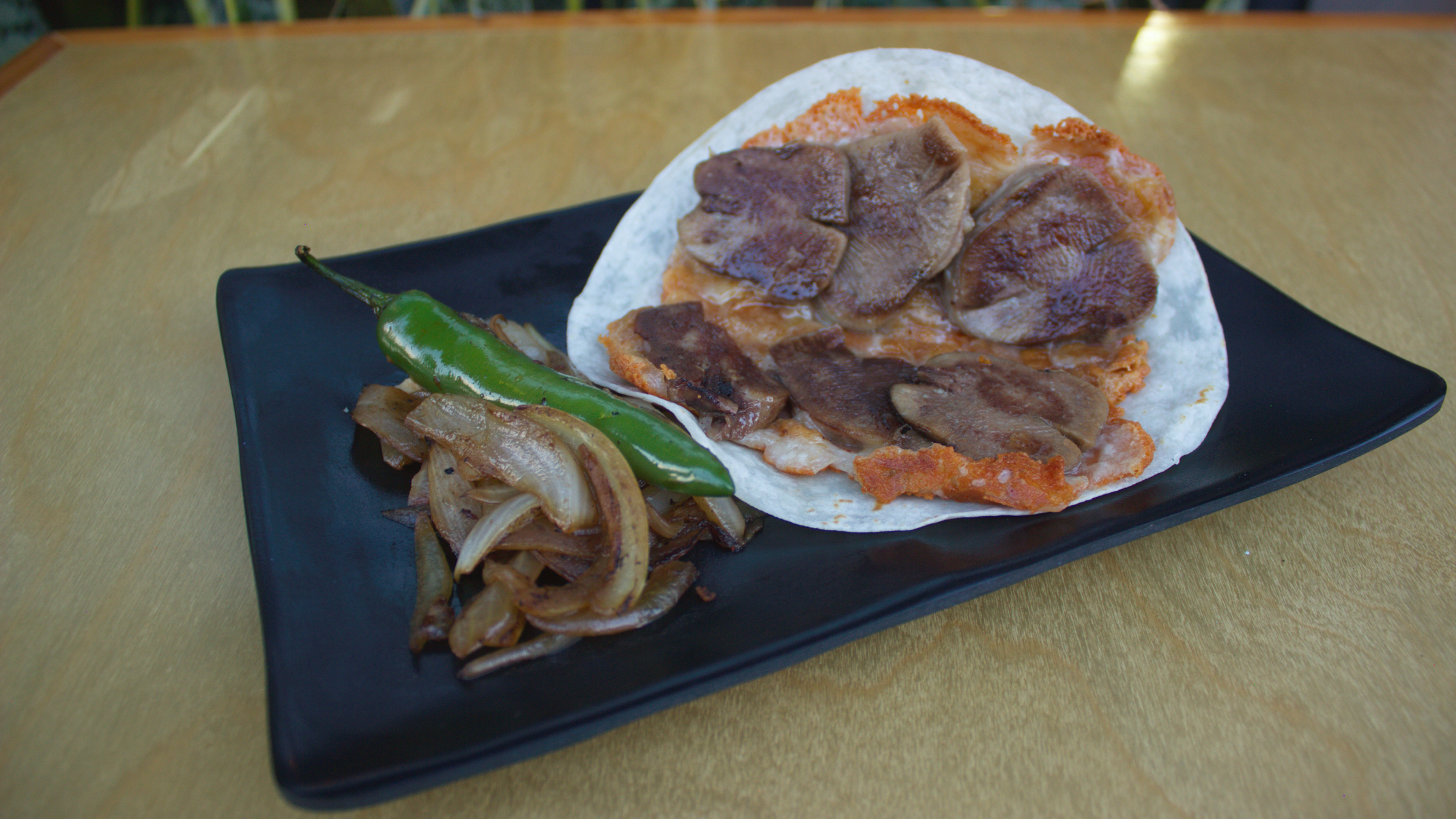 Queso fundido y carnes al estilo San Miguel El Alto. Quesadilla fuerte, con carácter.