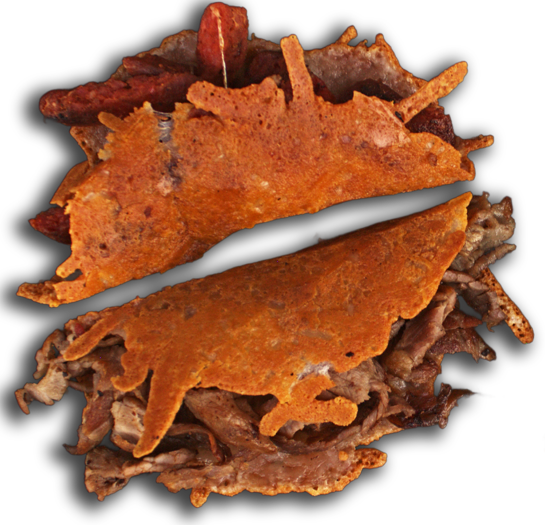 Sin tortilla, puro queso y carne. Seductor y curioso. Caliente al momento y relleno con tu elección de carne: