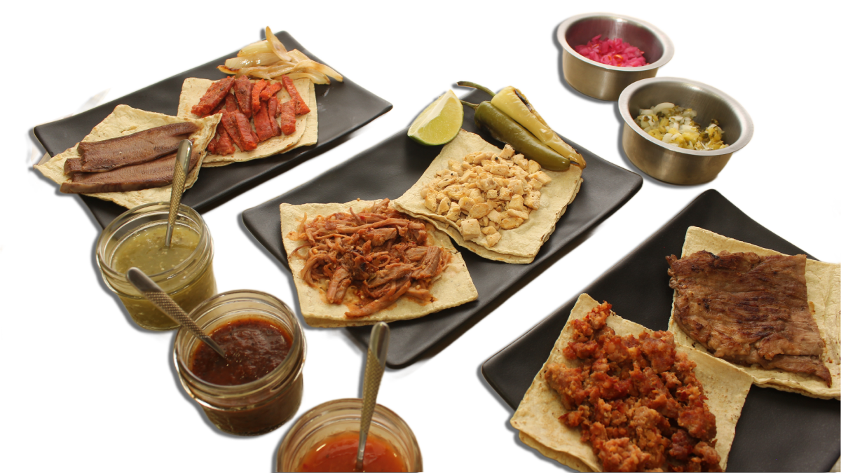 | Tipos de CARNE | 🌮 Asada, 🌭 Chorizo, 👅 Lengua, Tinga de POLLO, 🇪🇸 Chistorra, 🍗 Pollo ALTEÑO, Barbacoa, Pastor, Campechano |
